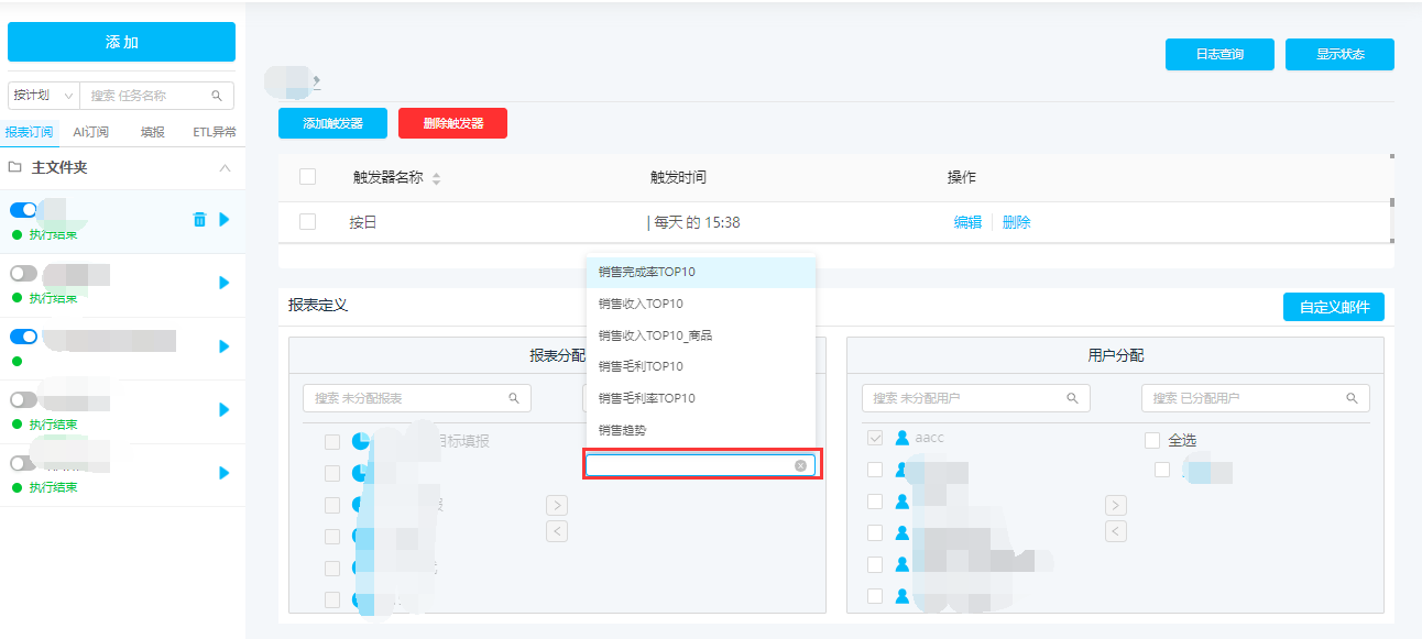 (6)分配需要推送的报表以及接收报表的用户