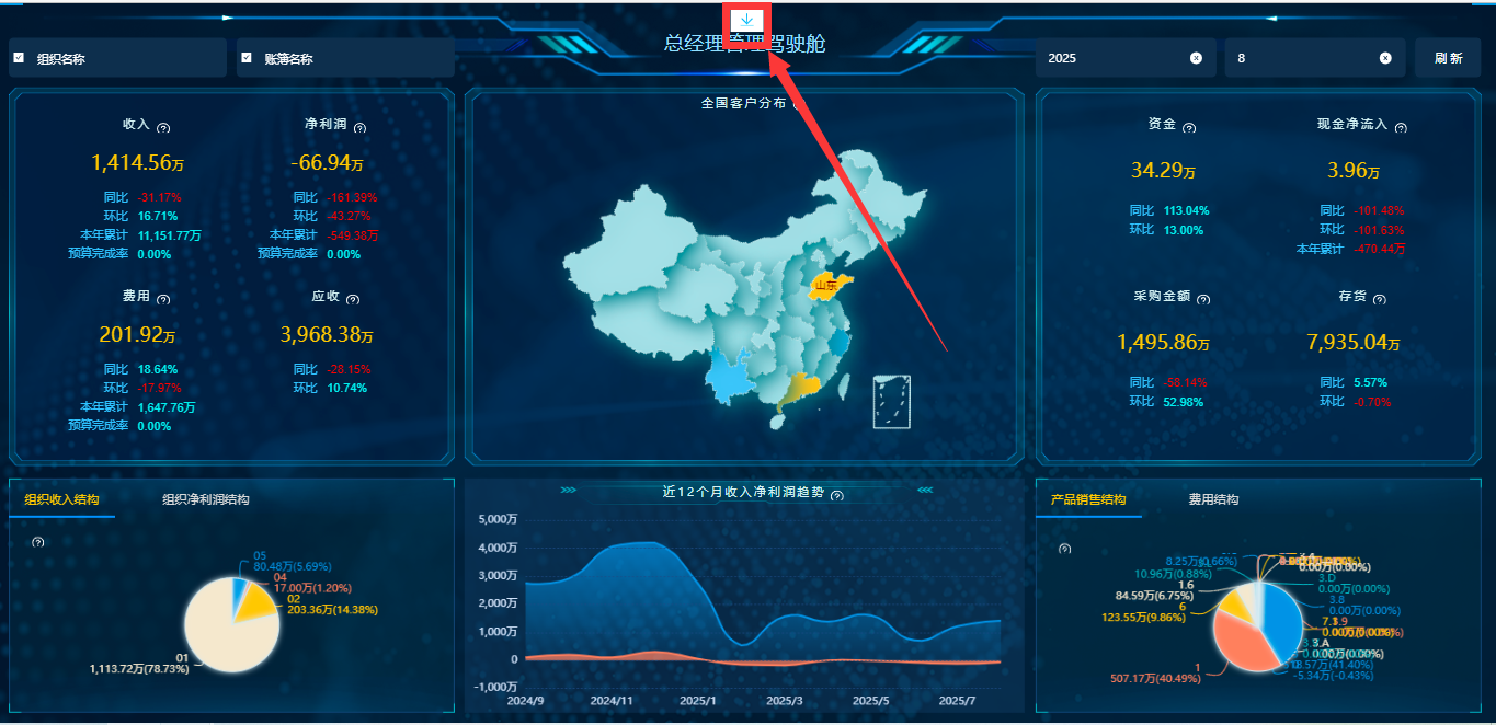 ①打开报表浏览页,点击最上方的折叠按钮,展开拓展面板