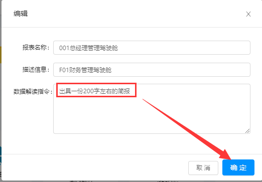 注:可以给报表设置数据解读指令,AI会优先按该指令解读并输出内容。