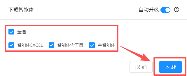 【下载智能体】:从云端下载奥威提前预置好的智能体流程,首次进入AI助手时会自动下载智能体。