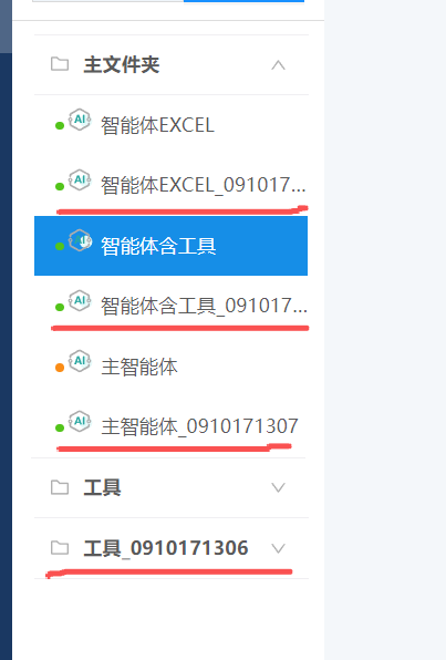 智能体更新后,目录中会出现多个流程,带日期后缀的是新下载的。