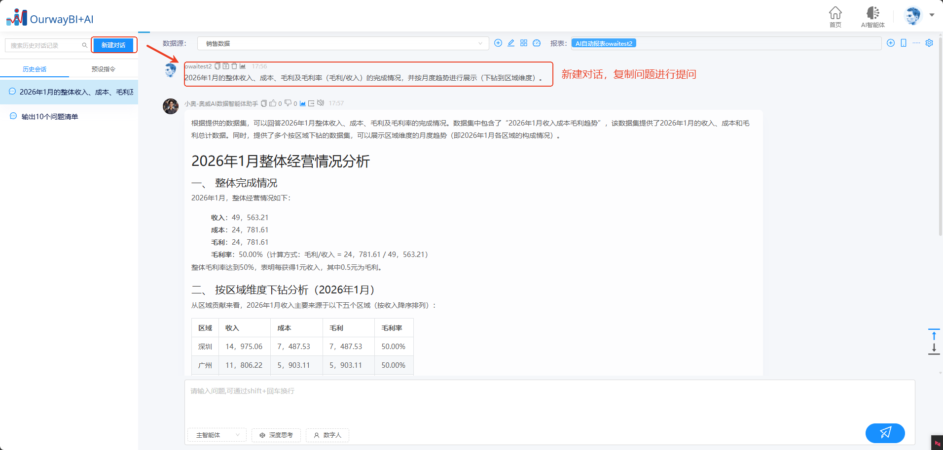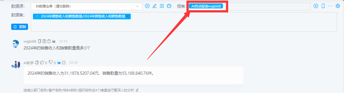 AI助手问答产出的结果,受到提问方式等因素的影响,不一定是完全准确的。如果我们对数据的准确性有疑问,可查阅输出结果附带的AI自动报表和中间过程,检验数据准确性。