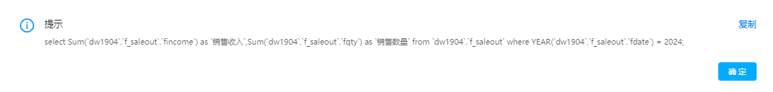 可单击下图按钮弹出sql脚本,复制后前往数据仓库执行,查看结果