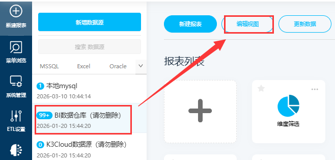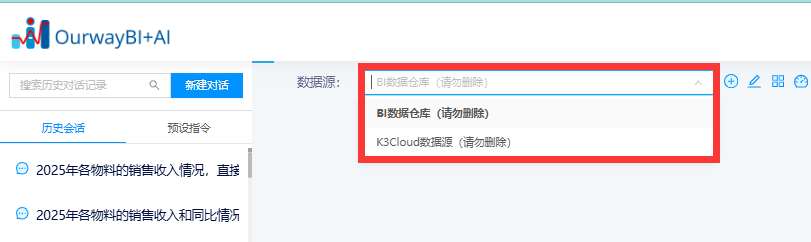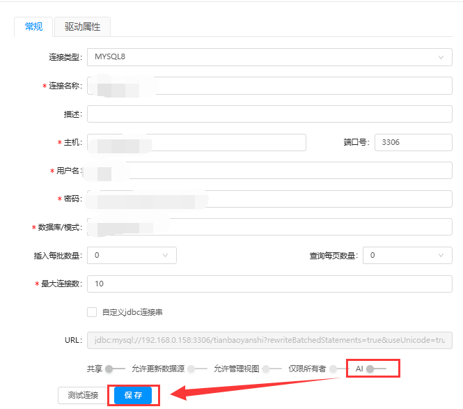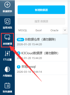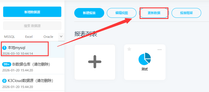 在新建报表/ETL-数据连接页,可在更新数据源处,设置是否开启AI,关闭后该数据源不会出现在AI助手的数据源列表内,AI也不会从这个数据源内获取数据来作答。