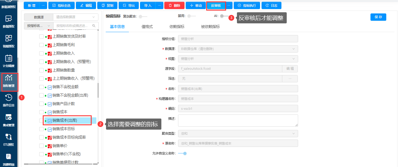 如果还需要进行手动调整,可以在系统管理-指标管理内进行调整。