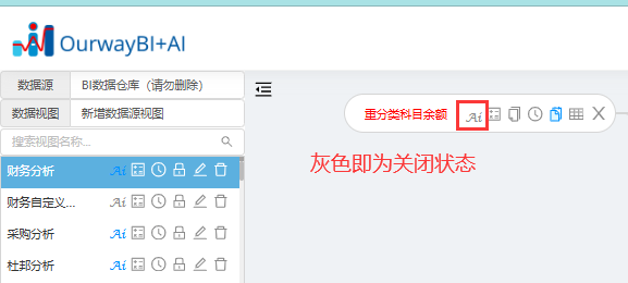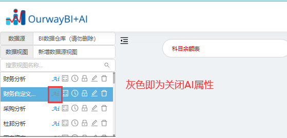 如果视图内的个别表不需要用于AI分析,可以手动关闭其AI开关。
