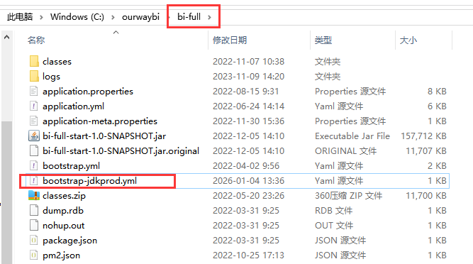 如果不确定支撑库类型是哪个,可以在原安装目录的bi-full路径下,用文本编辑器打开bootstrap-jdkprod.yml这个文件,查看支撑库连接信息。