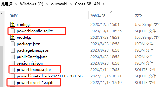 在BI的安装根目录下的Cross_SBI_API文件夹下另存备份这三个sqlite文件。